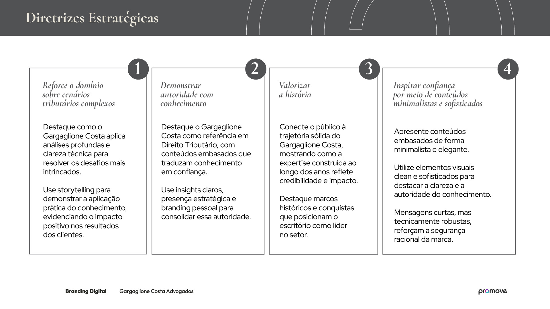 Projeto de branding digital desenvolvido para o escritório de advocacia Gargaglione Costa, em parceria com a Agência Promove.